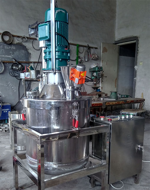 利用液化气、煤气、油等等加热,根据测温系统显示的温度,振动下丹,搅拌。